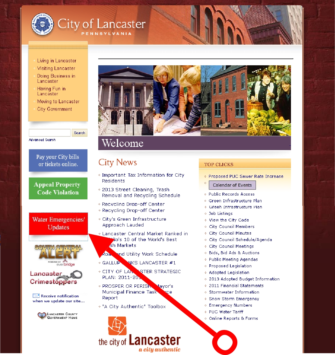 - Gee, here’s a novel idea: Lancaster’s Residents get water information at the City’s Website – “Lancaster city Public Works Department will be performing a thorough flushing of water distribution mains through May 24 to promote maximum water quality.” – Lancaster City Website click at the Water Emergencies/Updates Tab