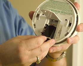 Keep charged batteries in smoke detectors. PHOTO SOURCE: U.S. Fire Administration