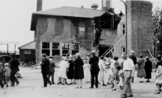 “The rear of the Bath School after the May 18, 1927 bombing. – Wikimedia Commons”
