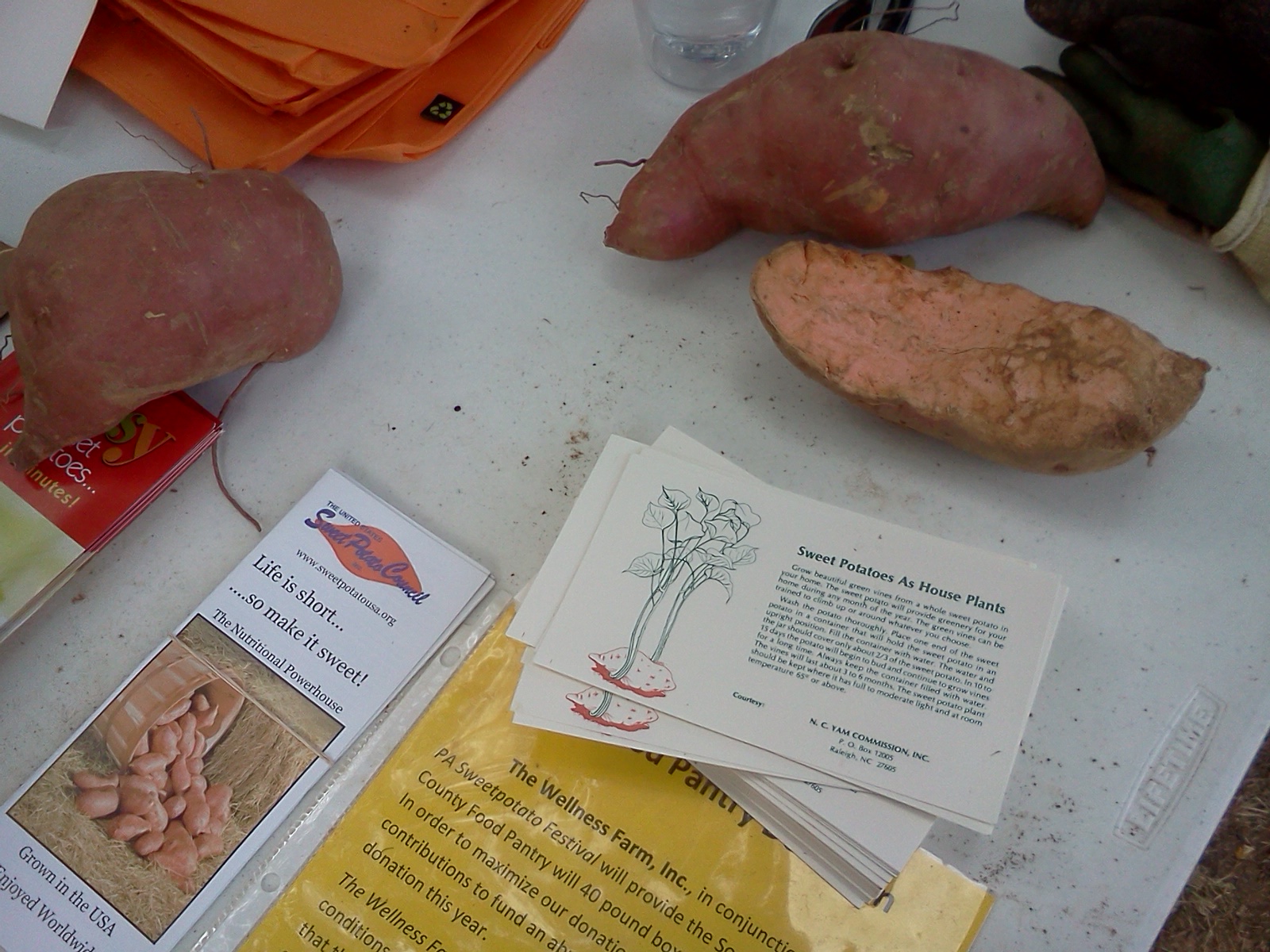 Yesterday, the Festival attracted over 500 visitors and charmed them with music and food treats such as sweet potato soup, sweet potato pancakes, sweet potato ice cream, sweet potato, marshmallow and peanut butter sandwiches and more. And visitors to the festival have the opportunity learn about numerous varieties of sweet potatoes and to dig up their own sweet potatoes from the field.