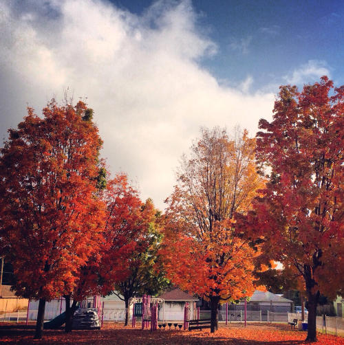 Trees have the look of fall as the leaves have fallen near the playground at Grantley Park in Spring Garden Township Thursday. (Randy Flaum)