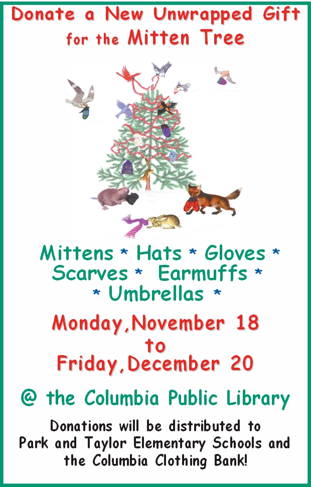 December 18, 2013December 17, 2013 17512 Columbia Bring something for the Mitten Tree at the Library Share this: Click to share on Facebook (Opens in new window) Facebook Click to share on X (Opens in new window) X Like Loading... Related