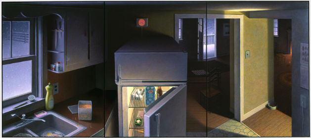 “Artist Rob Evans of Wrightsville doesn’t have to look very far for inspiration for his work. ‘Sometimes, just by taking something as simple a refrigerator,’ he says, ‘or a simple object that you see day to day but framing it in an almost iconic way in a painting can change it and give it that real unusual feeling to it that makes you look at it twice. I want people to come back to the paintings and keep finding intrigue and maybe then see their own world in a different way.’ And the result of his vision is unique.”