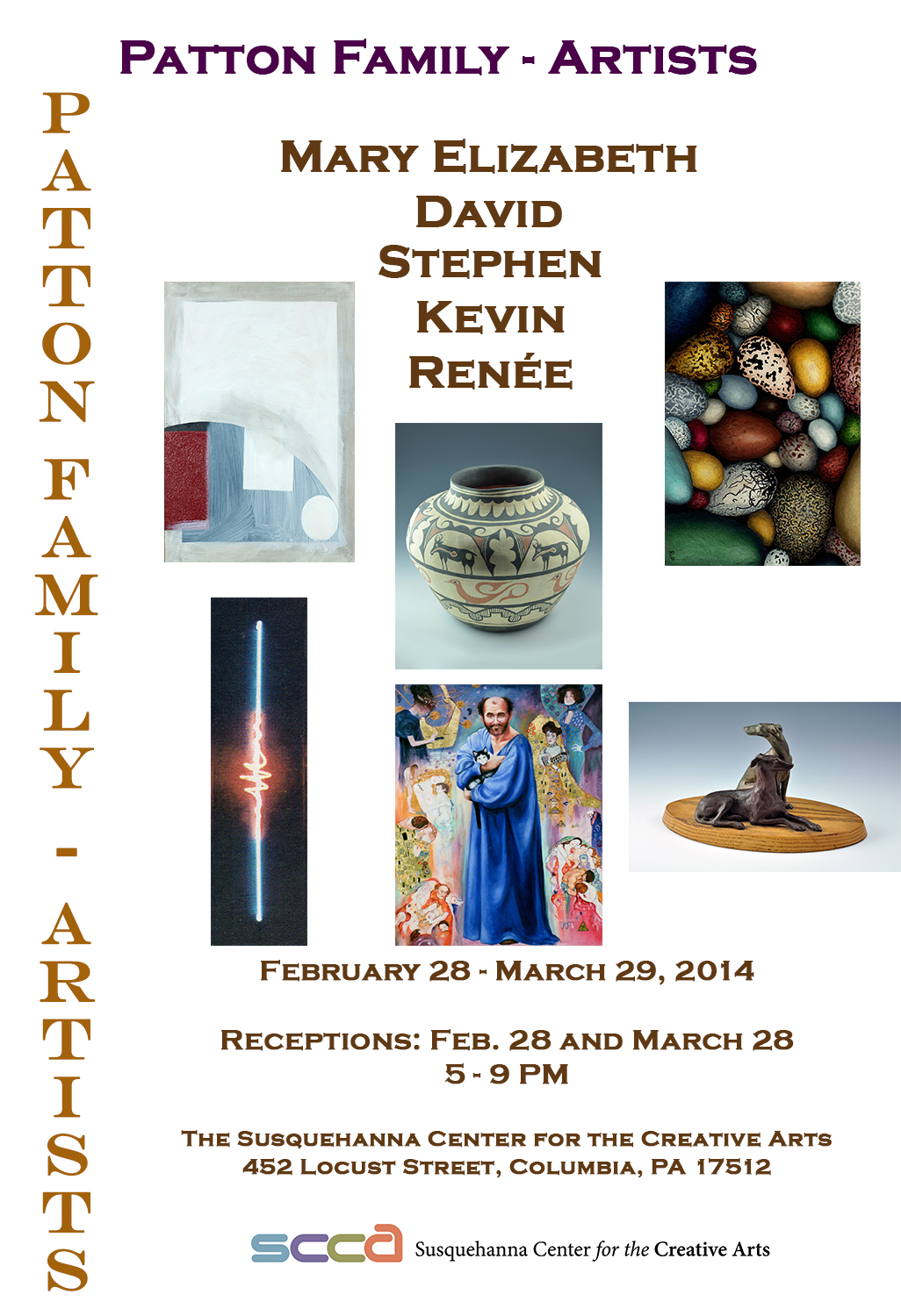 February 18, 2014February 18, 2014 17512 Columbia Susquehanna Center for the Creative Arts extends Fourth Friday invitation Please join us for our next art exhibition, “Patton Family – Artists” at the Susquehanna Center for the Creative Arts, Columbia, PA. on February 28 from 5-9 PM. Share this: Share on Facebook (Opens in new window) Facebook Share on X (Opens in new window) X Like Loading... Related