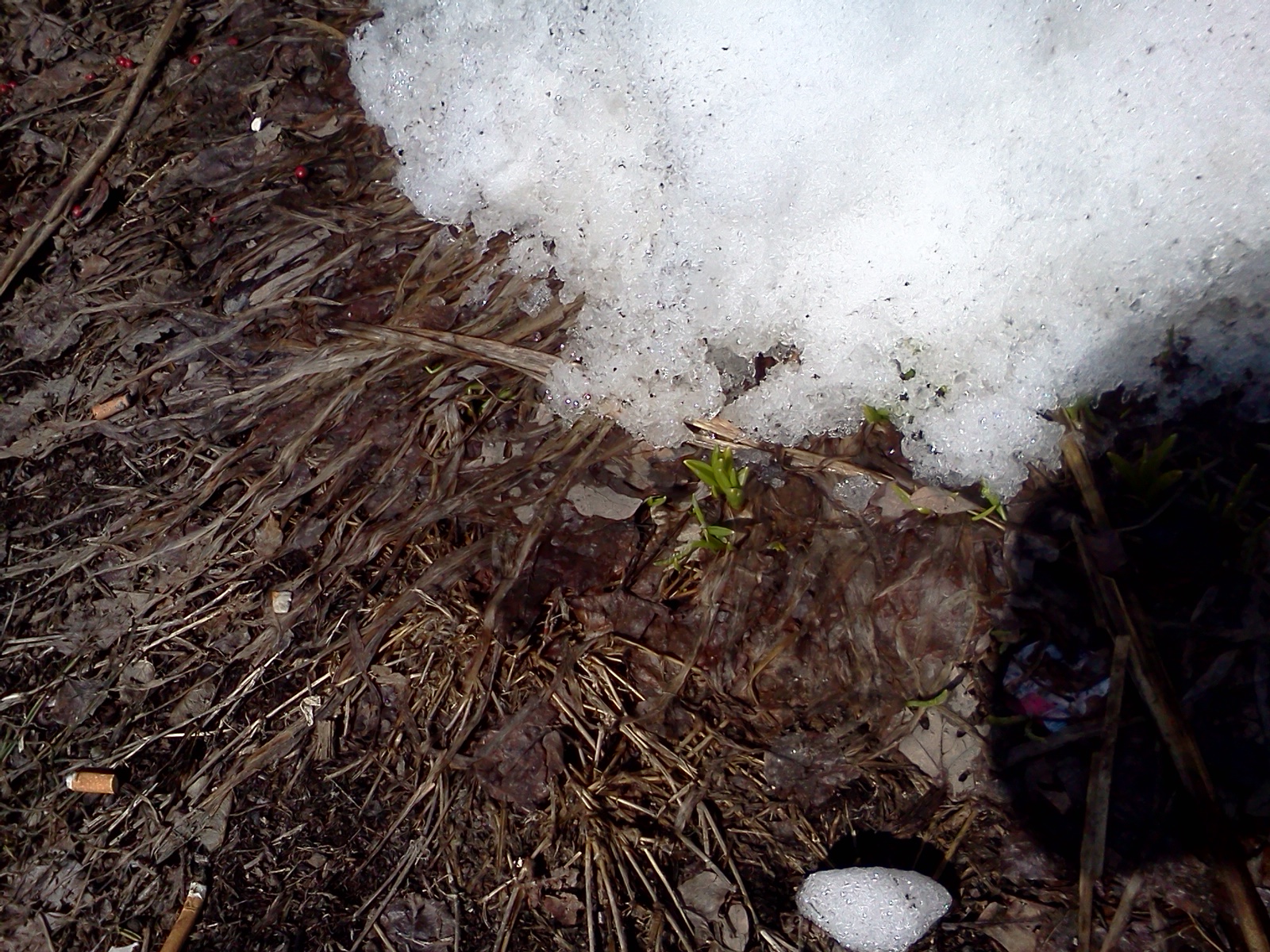 The promise a hope emerges in the form of spring flowers amid the snow, cigarette butts and trash in the little plot in front of the post office.