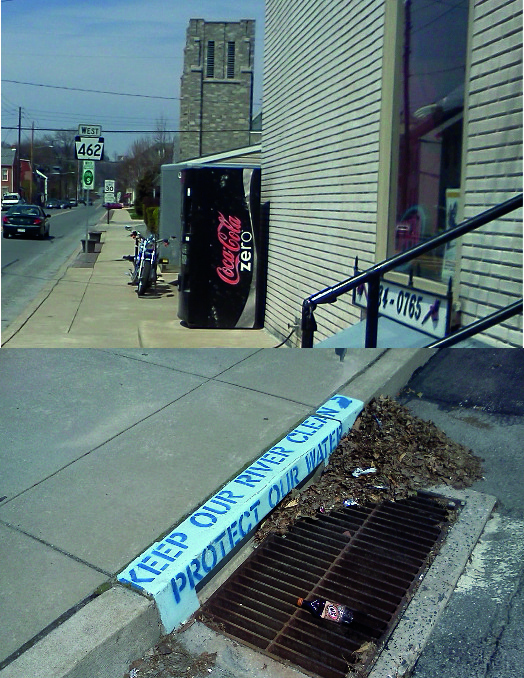 Anomalies abound. Evidently, you can get codes variations to have soda machines and motorcycles on the sidewalks of Columbia. Seems ironic to have all the blue painted signage extolling someone to “KEEP OUR RIVER CLEAN” and “PROTECT OUR WATER” when there’s organic matter, cigarette butts and trash serving as flotsam at nearly every grate.