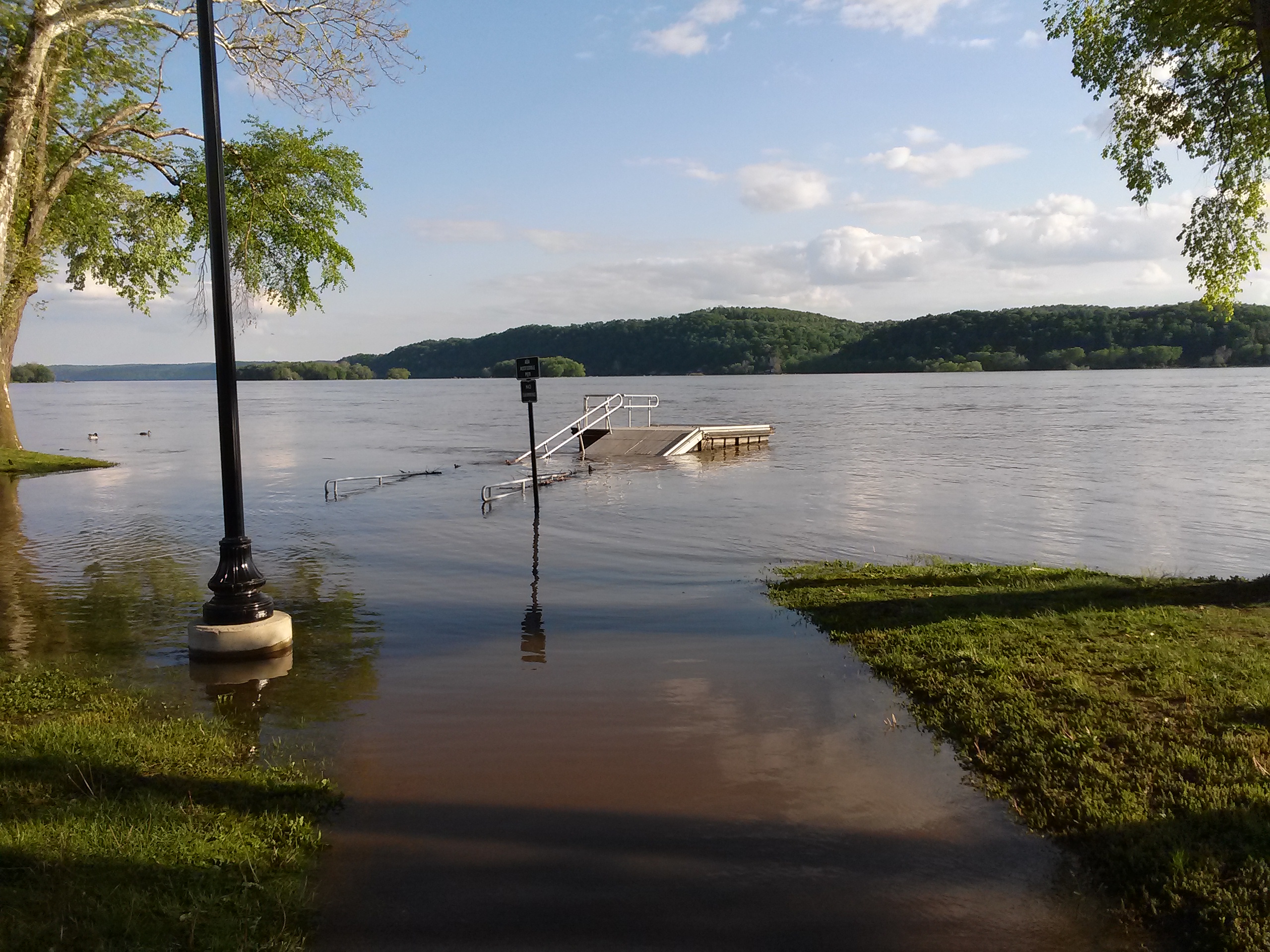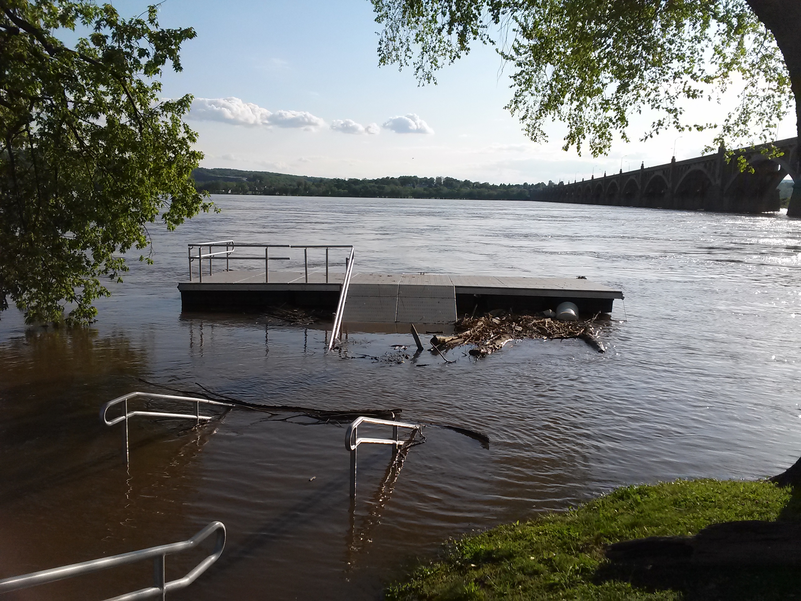 Heavy rains north of us have created a swifter, higher Susquehanna; here is one of the floating docks at River Front Park.