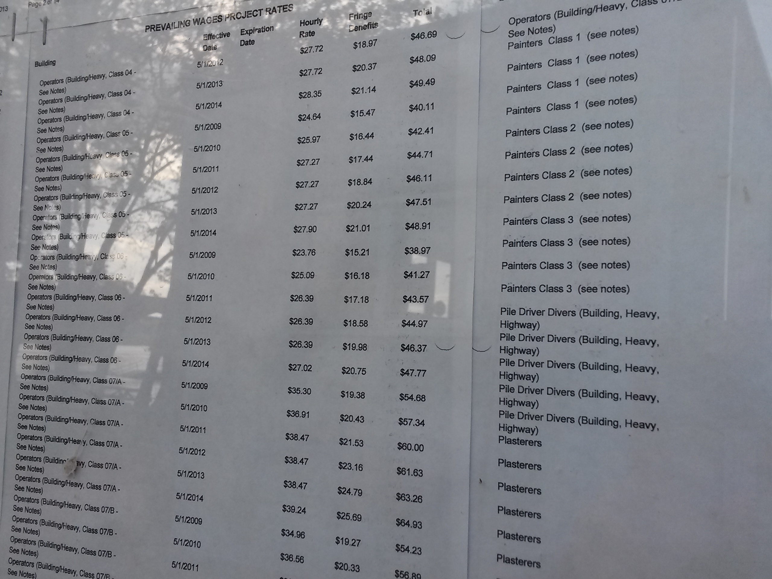 And now, the bulletin board with the wage rates for the Trail Building is “outside the wire” and people can see that being a tradesman working on a government project is fairly lucrative.
