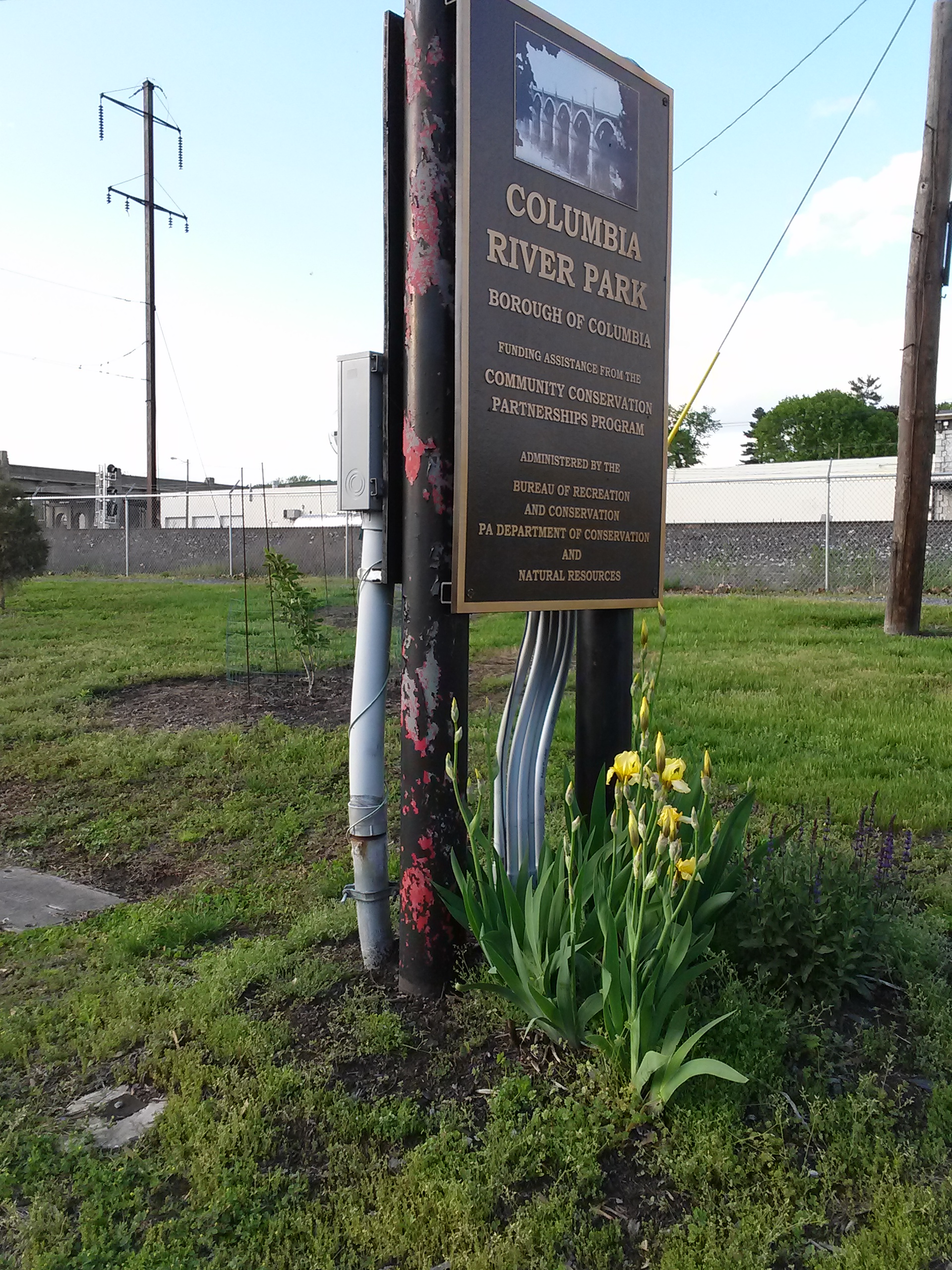 On the trail, from the Decatur Street access in Marietta, the scenery is green and lush. The high waters of the Susquehanna, rose over the trail in a few places. New to the trail this year are several substantial benches; each is identified with a sponsor’s marker.