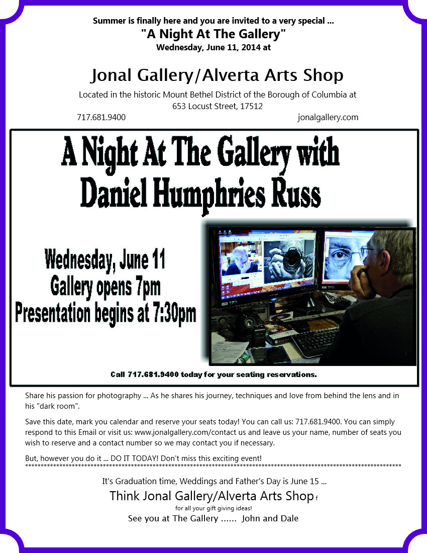 June 7, 2014June 7, 2014 17512 Columbia Jonal announces special “Night at the Gallery” for June 11 Jonal Gallery Share this: Click to share on Facebook (Opens in new window) Facebook Click to share on X (Opens in new window) X Like Loading... Related