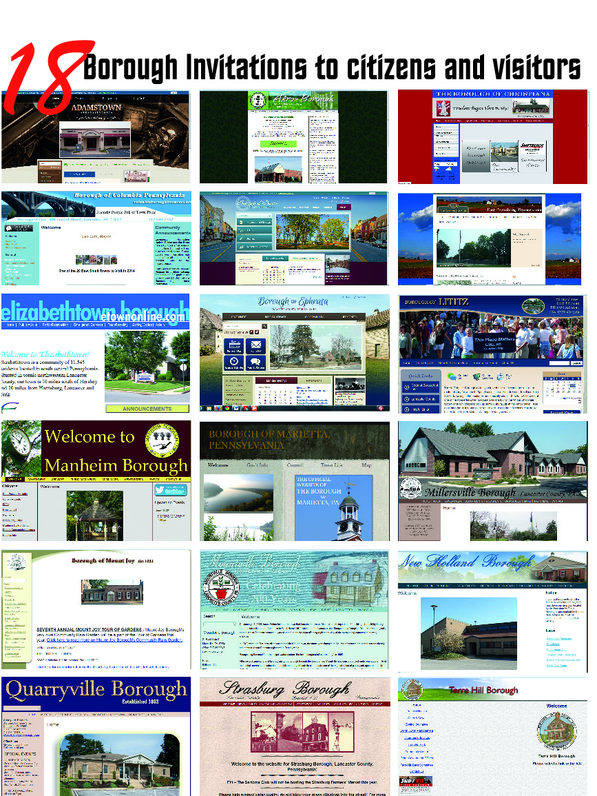 • Welcome to “our town!” The Lancaster County Economic Development Company’s Website features a page listing all of the townships and boroughs in the county to show investors, developers and interested parties places they may want to visit to consider as a likely venue for their project. It is a competitive world and the first impression many out-of-towners will get will be from the Website. The Website is the modern-day brochure and information packet. It ought to be attractive, up-to-date, interesting to look at, transparent and complete. Take a look at Lancaster County’s “municipal invitations” here.