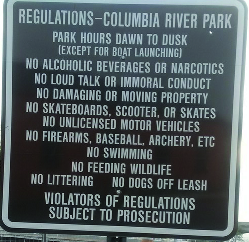 - Booze at River Park! The “no” sign clearly states ‘NO ALCOHOLIC BEVERAGES.” This is another of those “we don’t enforce” or “tough to enforce” codes, rules, regulations or ordinances. Clearly, lots of regulations, codes, etc. apply only to some folks or are enforced selectively. Yet one of the topics discussed at Monday’s meeting was shall the borough allow alcohol at the new Trail Building when it’s completed. Allowing alcohol would allow Columbia to be competitive in the solicitation of holding wedding receptions, etc. at the new structure. The discussion among those at the “decision tables” revealed that several entities and organizations including the Old Columbia Public Grounds Company, Pennsylvania’s Deaprtment of Conservation and Natural Resources and others would have to approve any decision like this. “Alcoholic beverages are prohibited,” is one of the Trail Rules of the Northwest Lancaster County River Trail – the heavily grant-developed trail that touches so many municipalities. Imagine each of these municipalities opening their stretch of the trail for “special exception” liquor stations.