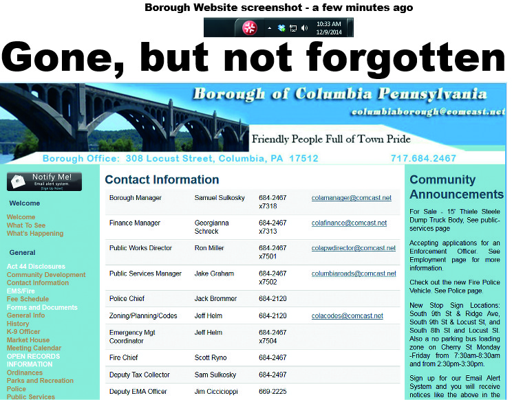 - Another perspective: “Columbia borough manager leaves after year and a half on the job” – LancasterOnline