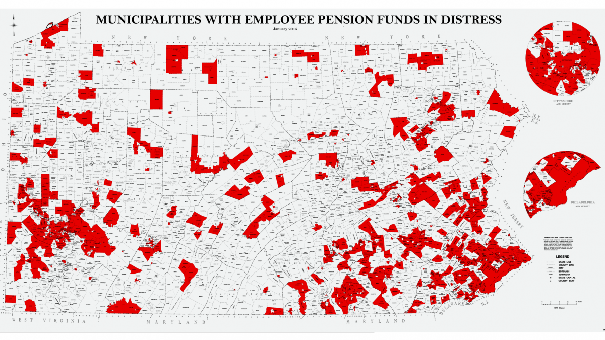 Click here to read the Auditor Generals report on the how and why’s of Pennsylvania’s 562 municipalities with administered pension plans that are “distressed” and underfunded by at least $7.7 billion.