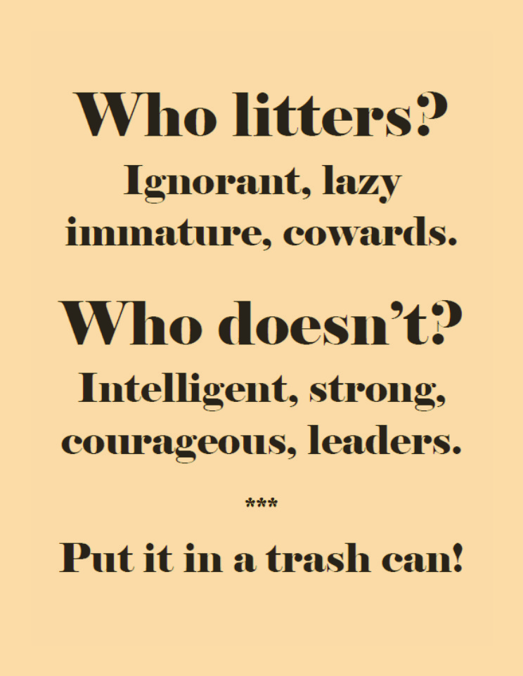 Quote for today … “The Government has tightened enforcement, and we will review our penalties to punish littering, to stop littering.” – From an article about tough littering laws in Singapore. where “the streets … are almost glistening with cleanliness.”