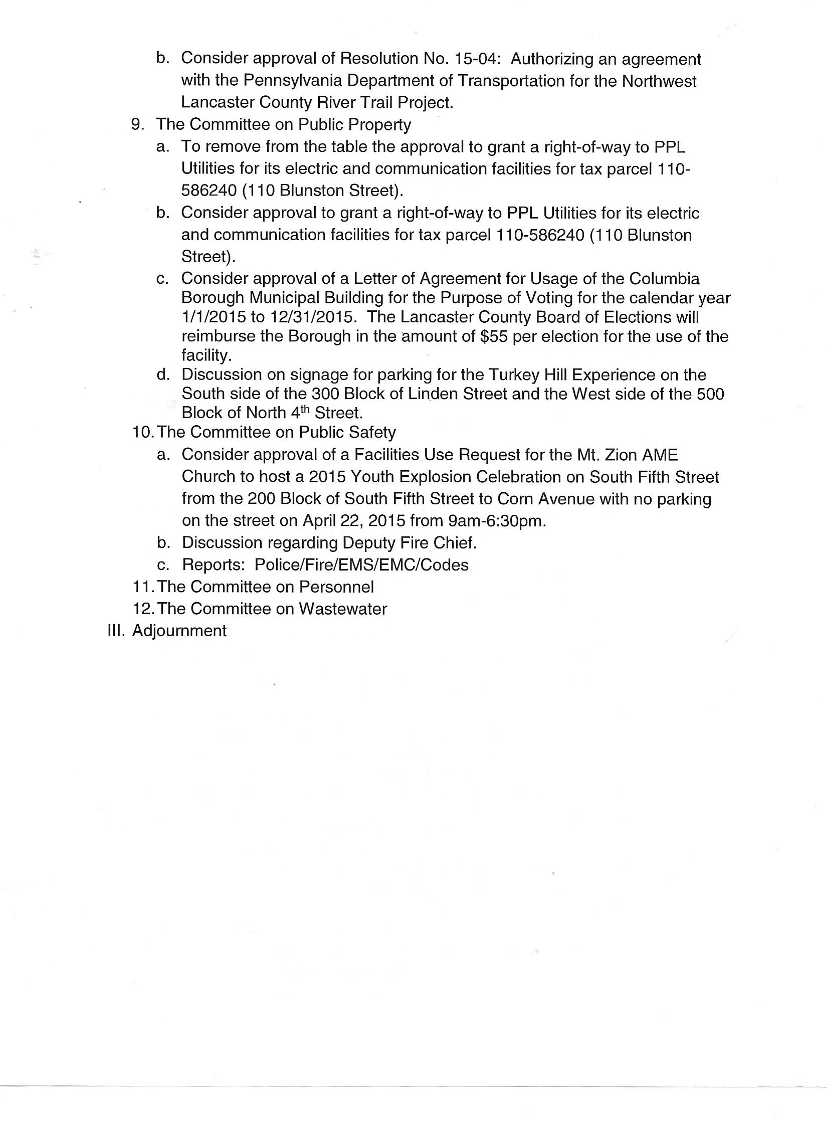 Take a look at agenda item II, 9, d. Someone actually wanted to have signage placed on borough streets providing parking for the Turkey Hill Experience. Mostly, the councillors, figuratively, were shaking their heads while trying to get their heads around the idea. The mayor provided very logical commentary about the unwise nature of even considering the thought.