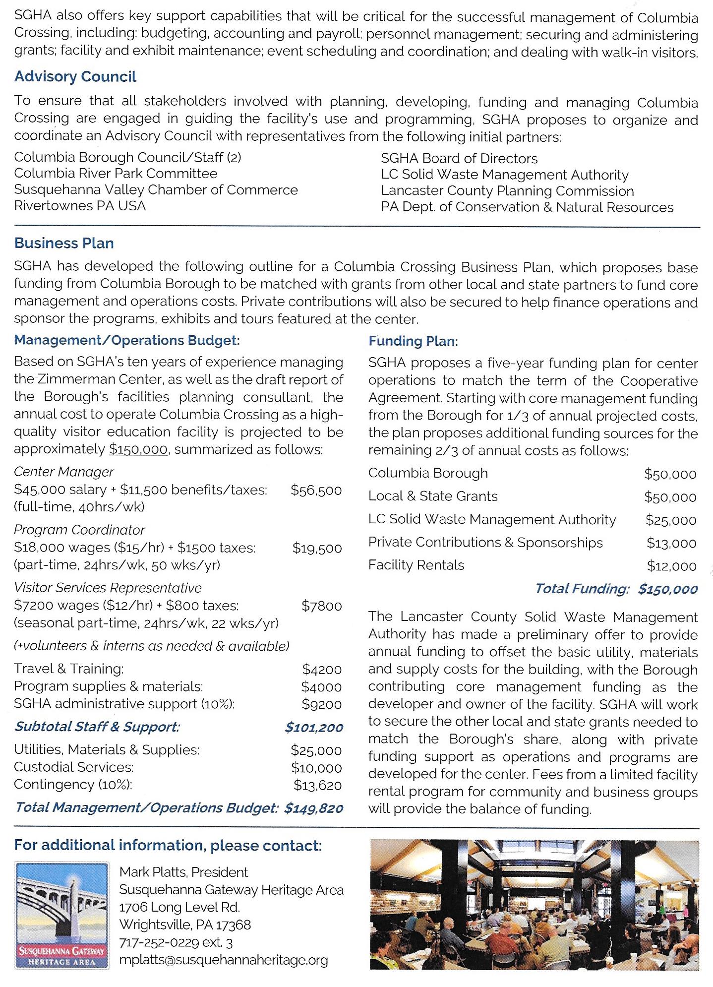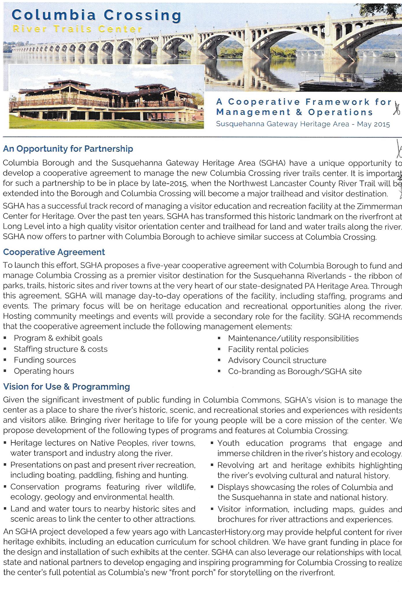 a proposal to “manage the Columbia Crossing river trails center” expressed at last night’s council meeting