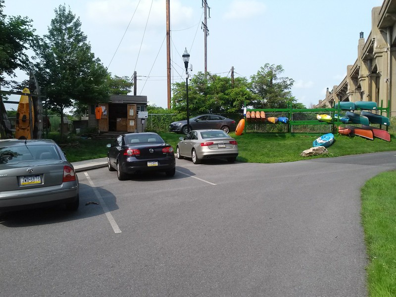 Parking on the grassy area is for overflow parking vehicles with trailers. The reality of having your cake and eating it too is that the majority of parking spaces at the River Park, aka boat launch or marina, are for vehicles with trailers. Visitors to the park, well, you’re on your own.