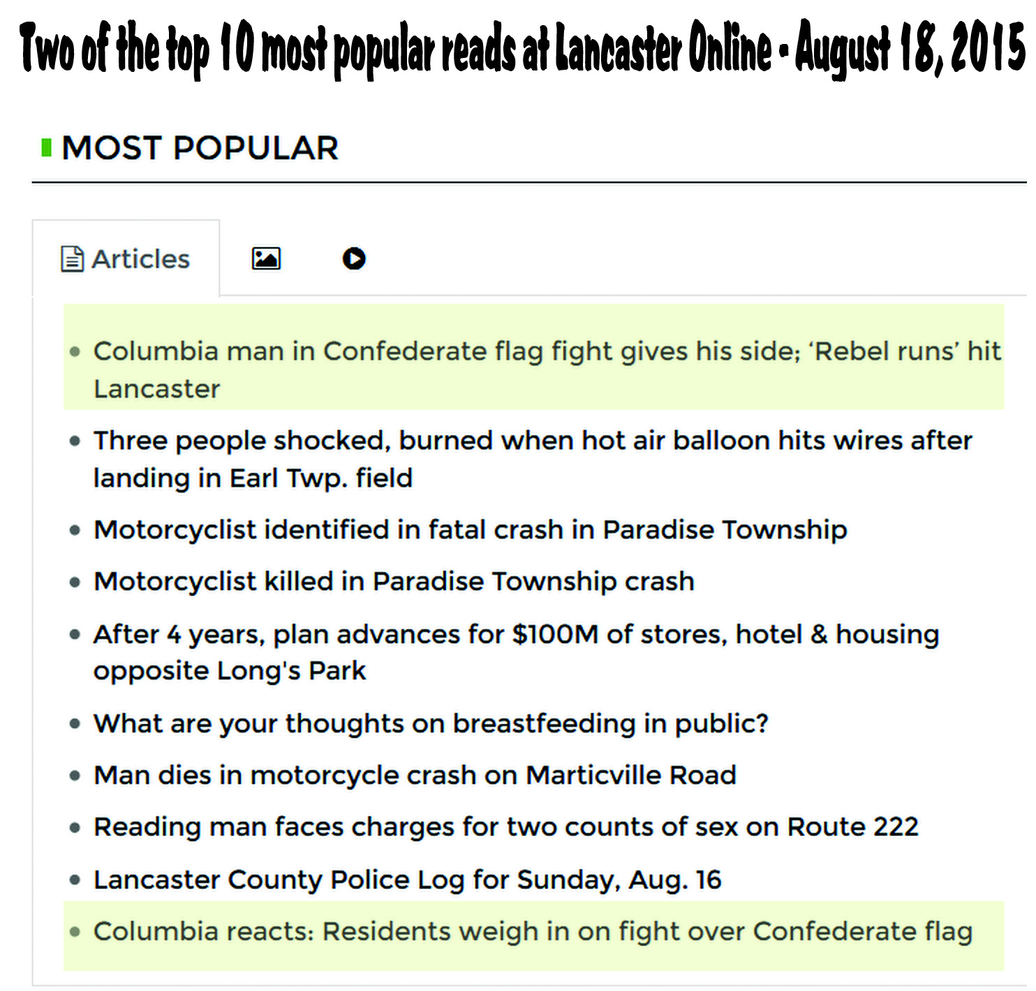 - Articles about events in Columbia at Lancaster Online‘s “most popular” – with dozens and dozens of reader comments