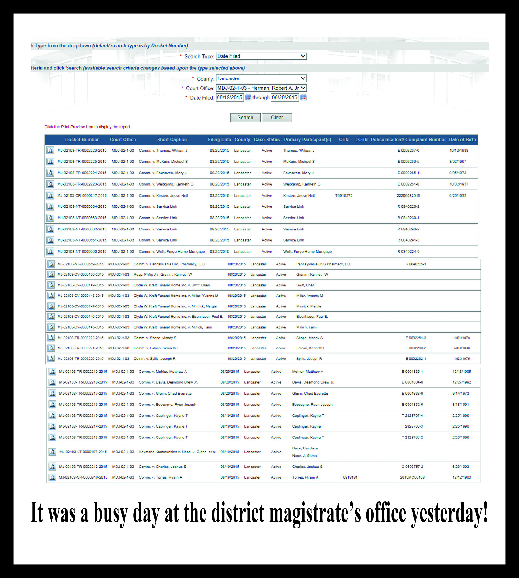 - Cole Umber’s Columbia Spy noted that Wednesday was a busy day at the district magistrate’s office. Yesterday was too; click here to check out the activity including a number of codes violations.