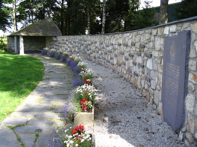 The memorial of the Malmedy massacre at Baugnez. Each black stone embedded into the wall represents one of the victims.The memorial of the Malmedy massacre. This World War II memorial is situated at the crossroads of the hamlet Baugnez (Belgium).