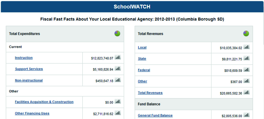 “To access the SchoolWATCH data, visit PaSchoolPerformance.org, select a school district and click on the “View Fiscal Information” tab located under district information.”