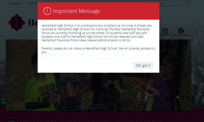 April 12, 2016April 12, 2016 17512 Columbia Lockdown at Hempfield this morning! Click here. Lancaster Online article Share this: Click to share on Facebook (Opens in new window) Facebook Click to share on X (Opens in new window) X Like Loading... Related