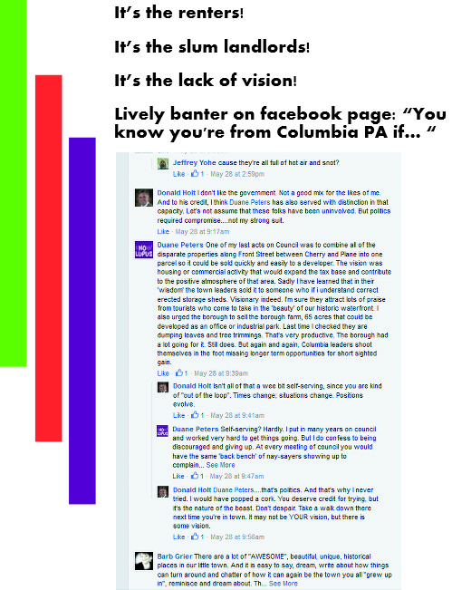 There’s a long stream of comments, banter and badinage about how to fix Columbia at the facebook page.