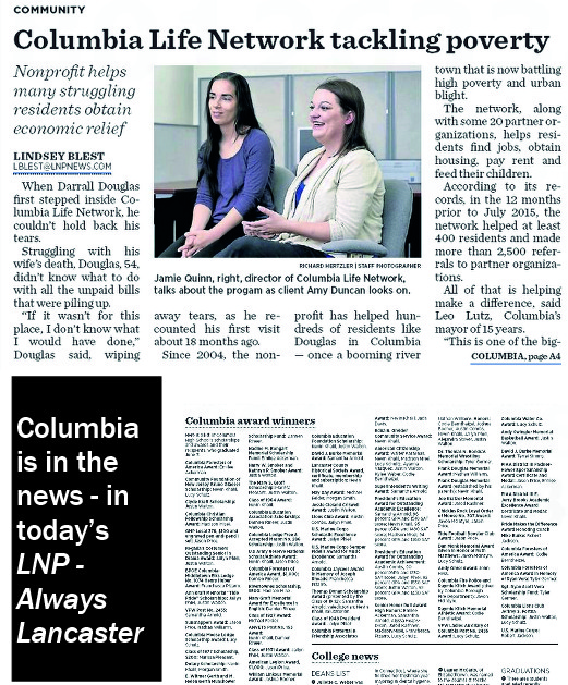 News about Columbia is in today’s daily newspaper: LNP – Always Lancaster.