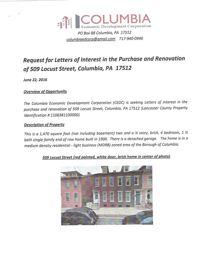 Here’s a post at the facebook page: Seeking someone to purchase and renovate this property in the 500 block of Locust Street.