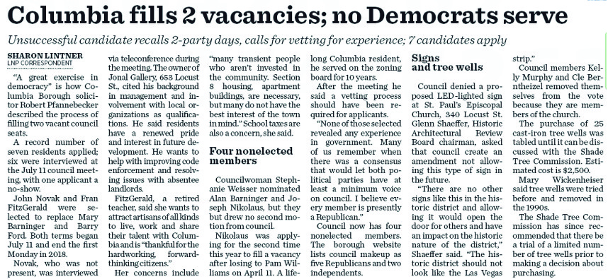 This LNP – Always Lancaster article is about last week’s council meeting.
