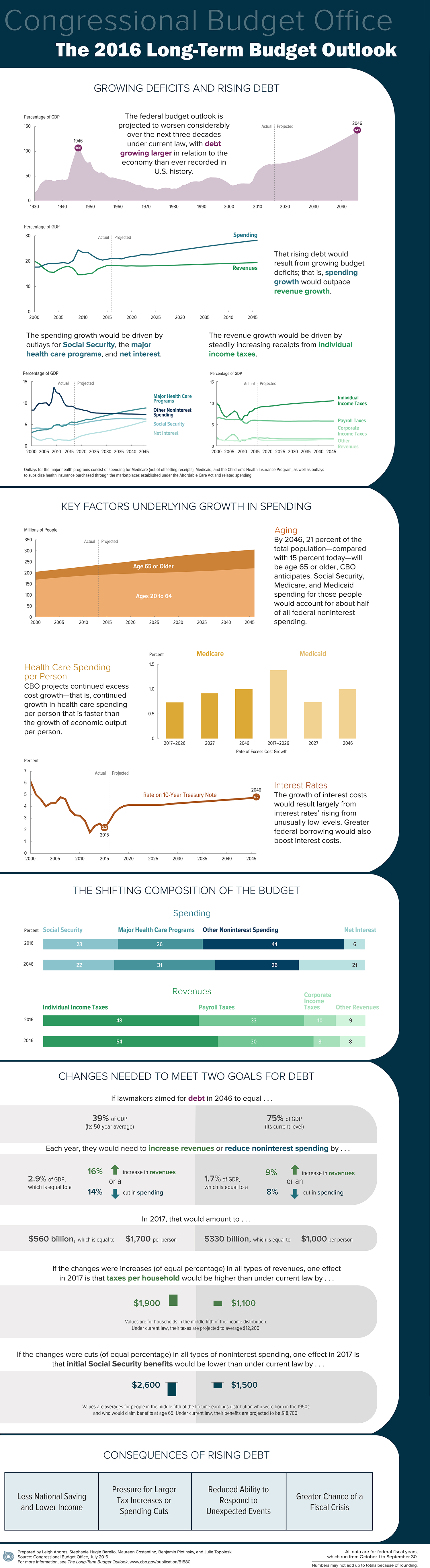 - Not a pretty picture | “If current laws remained generally unchanged, the United States would face steadily increasing federal budget deficits and debt over the next 30 years—reaching the highest level of debt relative to GDP ever experienced in this country.” – Congressional Budget Office