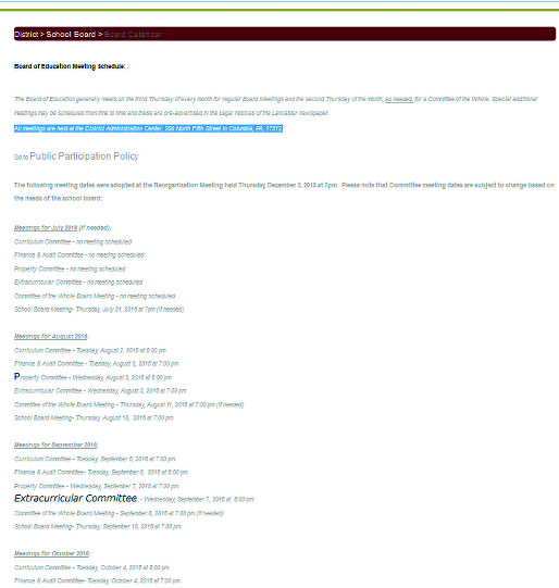 No matter how difficult the Columbia Borough School District tries to hide meeting information (tiny type, colored type), there is a scheduled meeting tomorrow evening.