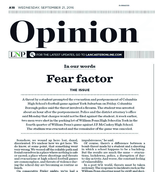 - Making it! Columbia’s news is in today’s LNP – Always Lancaster … Last week’s council meeting topics are covered in the Municipal Briefs and last Friday’s response to a purported threat lead the editorial.