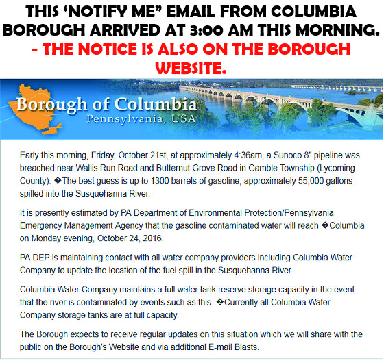 Pipeline break, gasoline in the Susquehanna River – Let us remember what Pogo said in Walt Kelly’s famous comic strip of the same name: “WE HAVE MET THE ENEMY, AND HE IS US.”