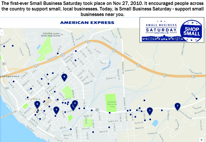 Many area small business enterprises are participating in SMALL BUSINESS SATURDAY today. Only qualifying American Express Card accepting small merchants will be featured on the map.