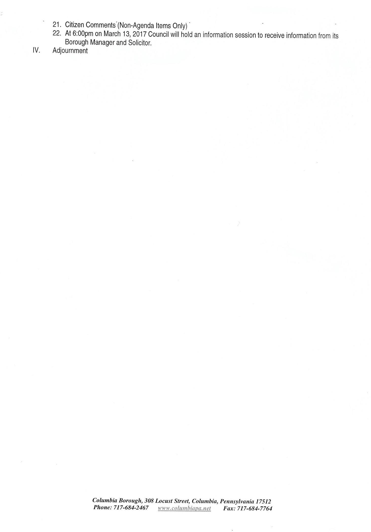 - The meeting agenda is shown at the end of this column.