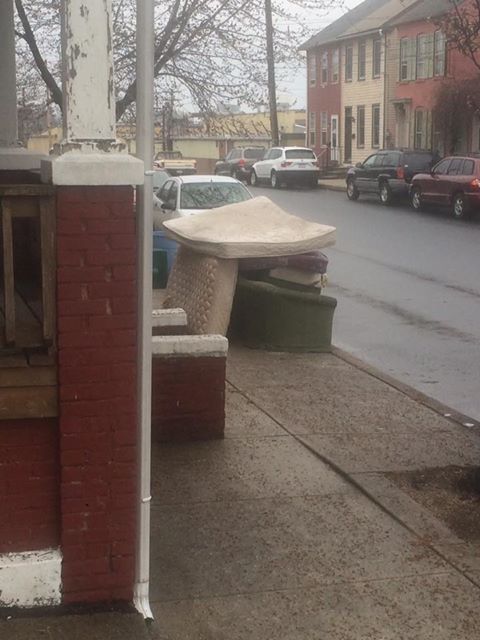 - This post at the “What’s Happening in Columbia,Pa. and Area” facebook site includes the above photo and this statement: “So I thought trash wasn’t supposed to be visible from the street? Trash day today and nothing has been picked up, in fact the trash company came and picked up the ‘regular’ trash…. this has been sitting since last week…. 3 phone calls to the boro office and NO response yet……..” And a string of comments follow.