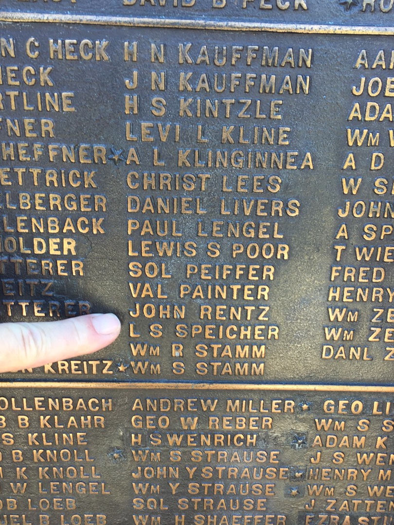 Great-great grandfather John Rentz’s name is on Pennsylvania’s 151st Infantry monument at Gettysburg.