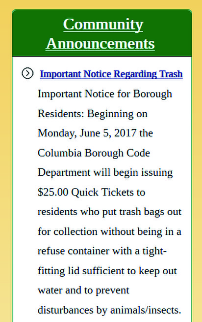 Fair notice – this is at the Borough Website. Let’s “clean up,” Columbia.