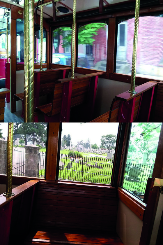 The interior of the trolley is quite nice – beautiful wood, brass and leather adorn the area where people sit.