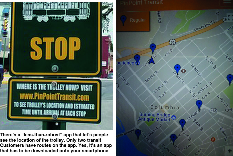 If the nearly 8,000 adults living in Columbia took a ride on the trolley, the borough could knock off $24,000 from the purchase price. And that’s what we decided to do today – take a ride on the trolley for $3.00.