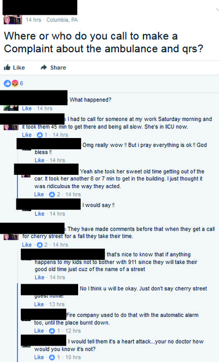 bashersFacebook bashers take on Columbia’s Emergency Medical Services providers in this lengthy string at “What’s Happening in Columbia,Pa. and Area – Part 1.