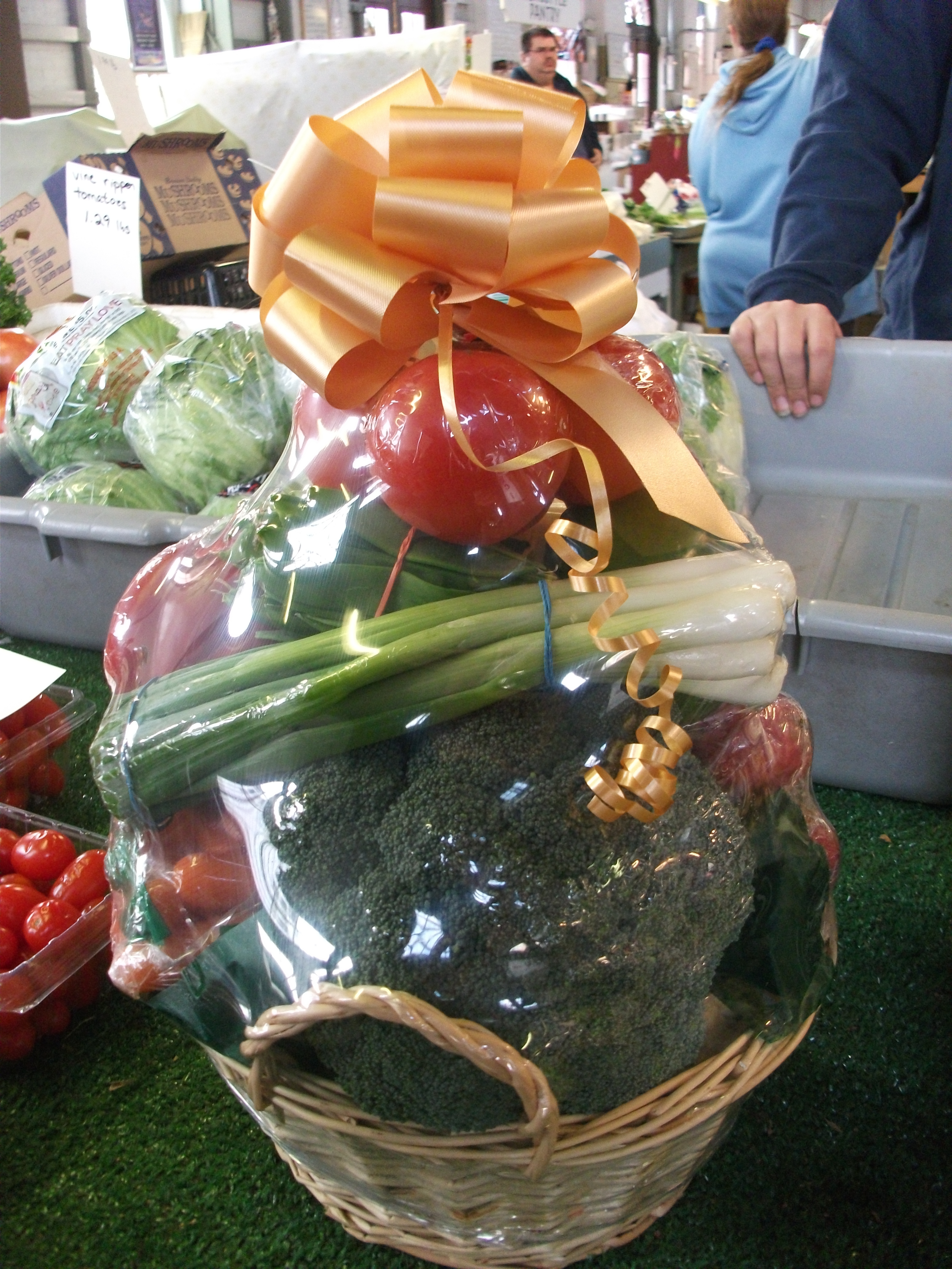 Veggie Basket 003A Bob Keagy original “veggie basket.” Shoppers often saw Bob preparing fruits and vegetables for baskets while he tended market.