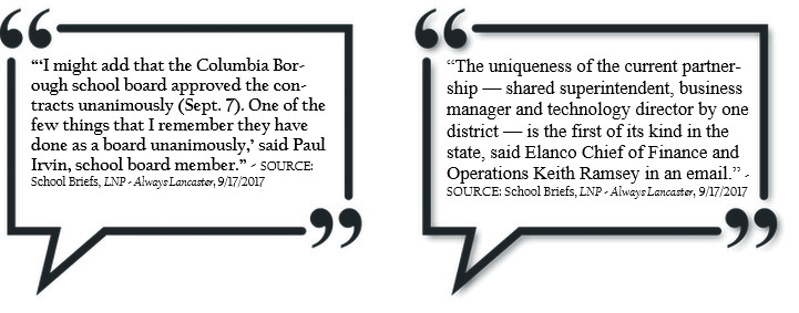 The School Briefs in today’s LNP – Always Lancaster tells the story of the two-school-dristrict shared services experiment from the other school board of directors’ meeting.