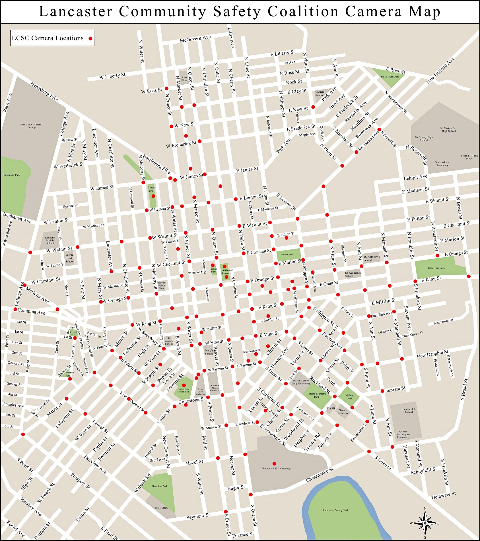 In Lancaster, everyone knows where the surveillance cameras are positioned.