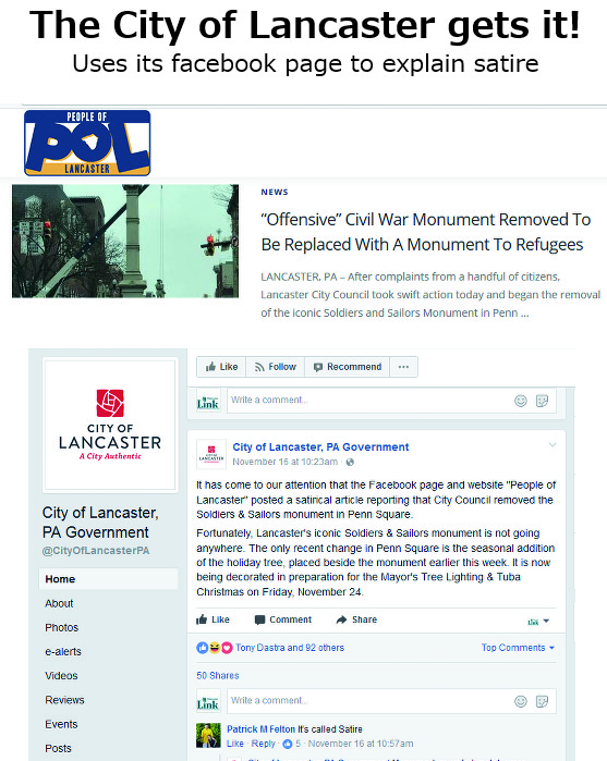 Just as the “possum piece” posted at Columbia Spy, The Real People of Lancaster pokes fun at other places using satire.