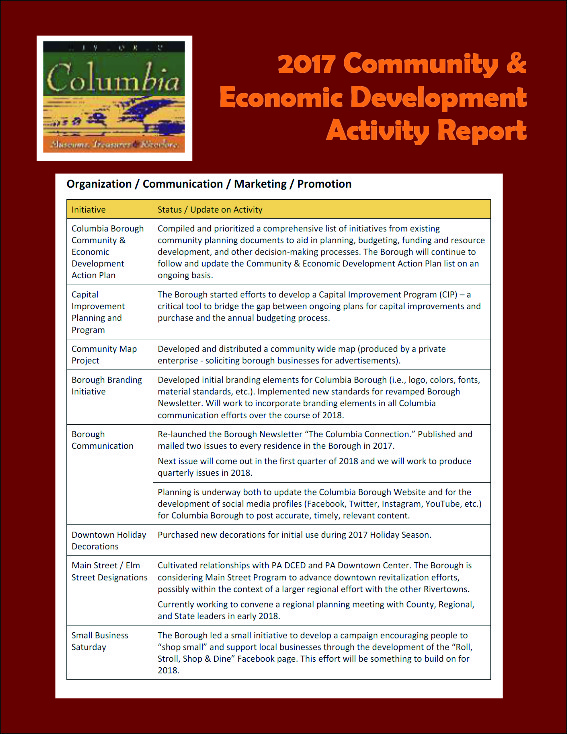 Borough’s 2017 community & economic development activity report released at last night’s council meeting