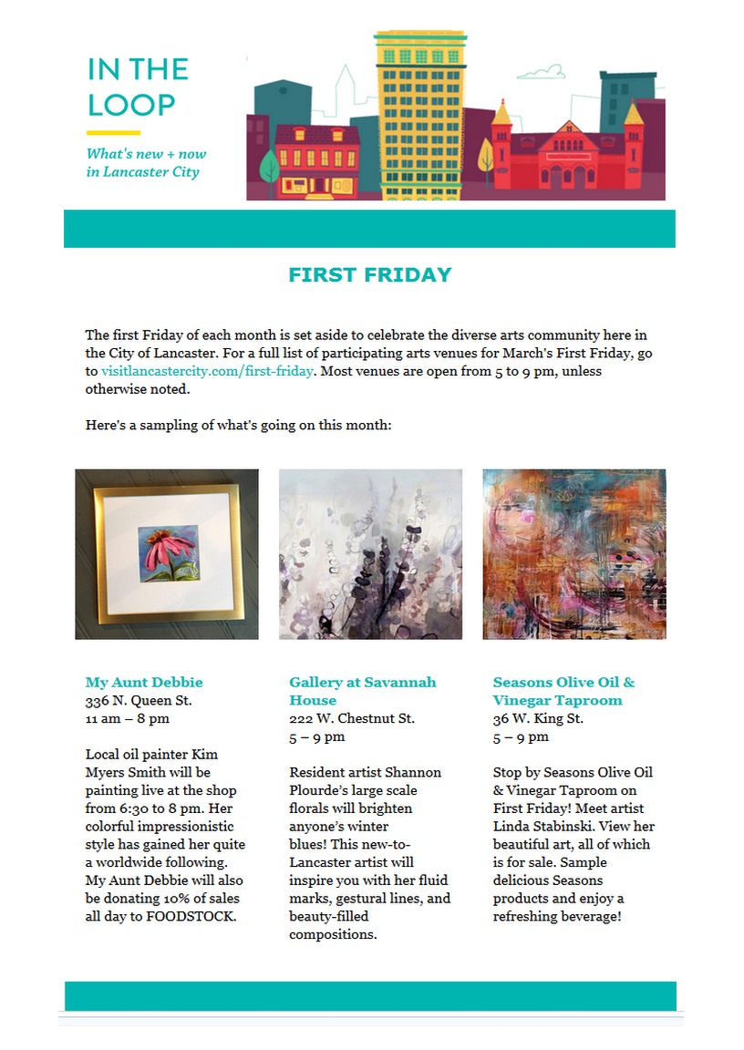 The City of Lancaster is all about one message as it communicates FIRST FRIDAY message in an email to its interested shareholders.