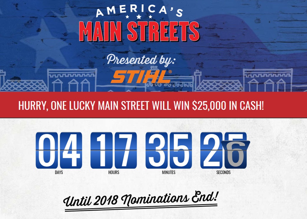 Earlier this year, “the third annual America’s Main Streets contest kicks off to help consumers, small business owners and Main Street organizations reward a deserving Main Street with $25,000 in cash and sponsor-related prizes. America’s Main Streets play an important role in the long-term success of communities and help build a sense of place reinforcing this year’s theme: “Local Memories. Lasting Impact.” Independent We Stand invites the public to nominate and vote for their favorite Main Street — whether it’s making a comeback or never lost its staying power.
